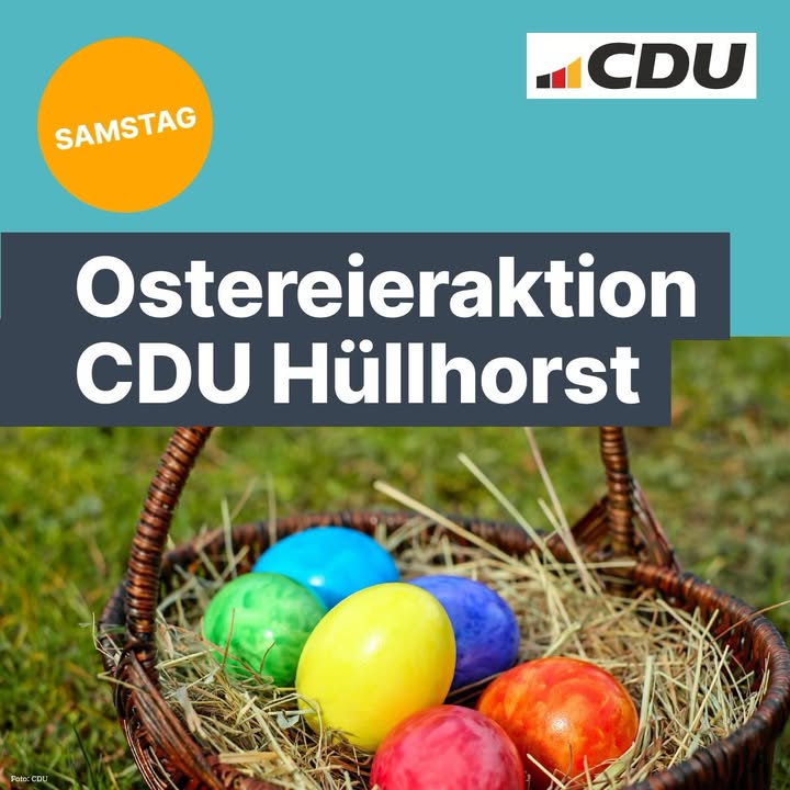 Am Samstag sind wir als CDU Hüllhorst wieder in der ganzen Gemeinde mit unserer Osteraktion unterwegs 🐣🌷. An verschiedenen Standorten verteilen wir Ostereier und freuen uns darauf, mit euch ins Gespräch zu kommen, Fragen zu beantworten oder einfach einen schönen Moment miteinander zu teilen. Kommt gerne vorbei, wir freuen uns auf euch! 😊 Ansonsten sehen wir uns vielleicht Samstagabend beim Osterfeuer der CDU Ortsunion Oberbauerschaft? 🐰#CDUHüllhorst #Ostern #hüllhorst